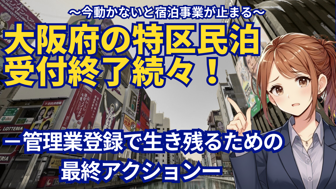 そうなんです。今回は大阪市でこれまで多くの民泊事業者が利用してきた「特区民泊制度」が、2026年5月30日をもって新規受付を停止することが発表されました。
