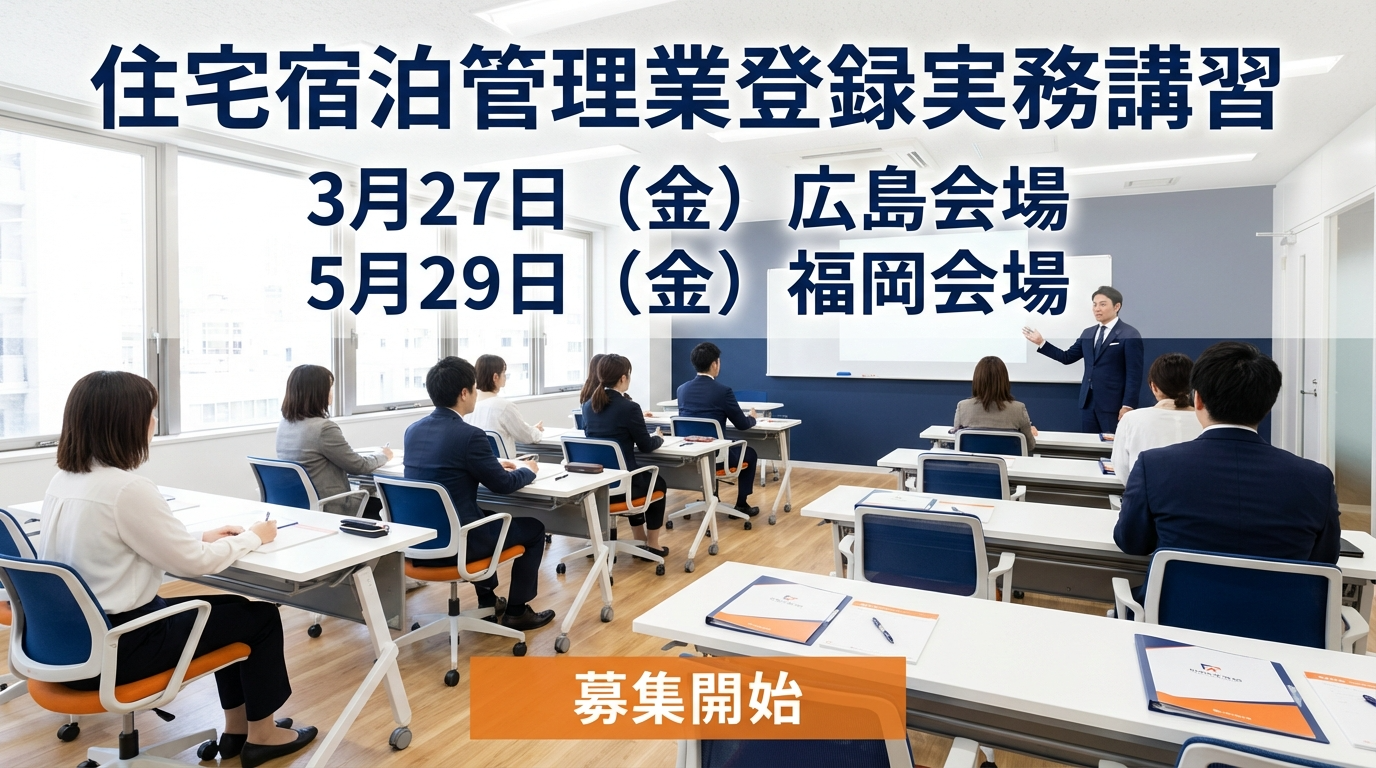 九州・中国地方 住宅宿泊管理業登録実務講習事務局 📧 info@minpaku-kosyu.com 🌐 https://minpaku-kosyu.com/ 📞 050-1426-5896