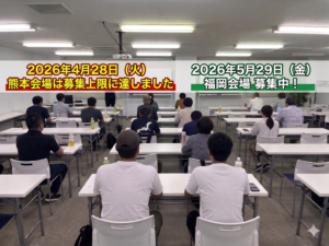 おかげさまで、来る4月28日(金)に熊本市内で開催を予定しております講習は、定員に達したため、募集を締め切らせていただきました。